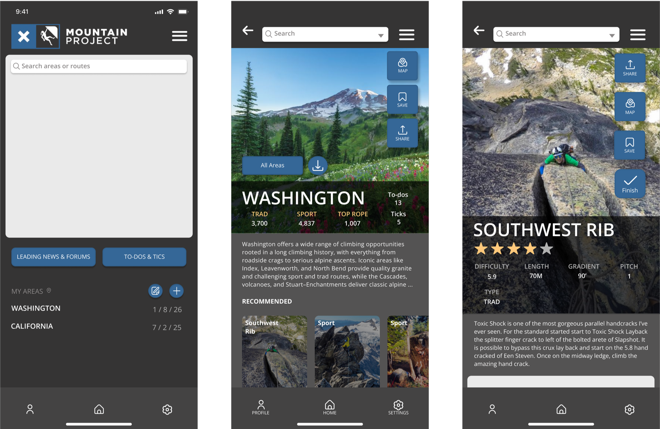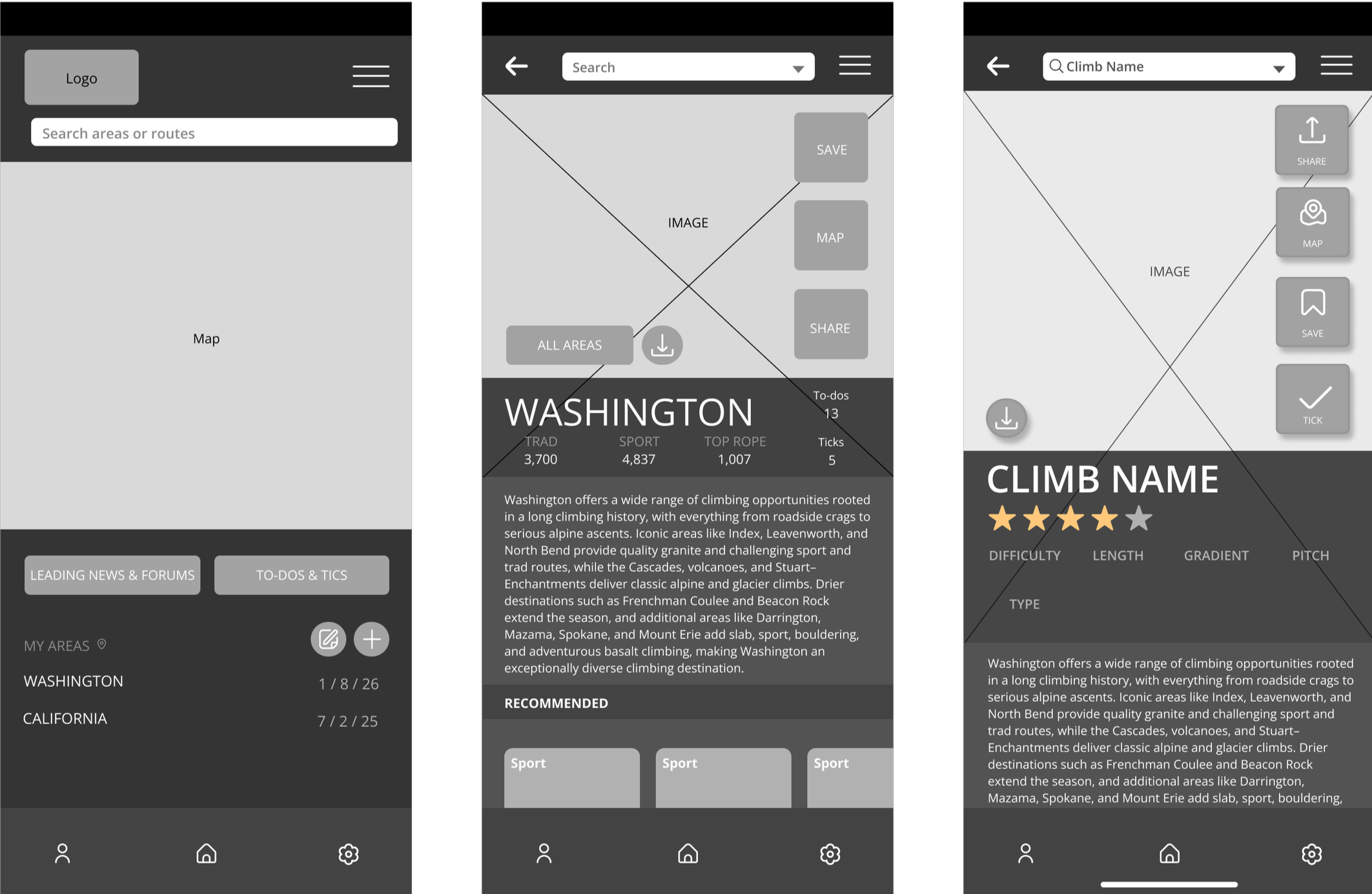 Developed first iterations of UI elements, including icons, button placement, text bubbles, headers, and recommended climbs