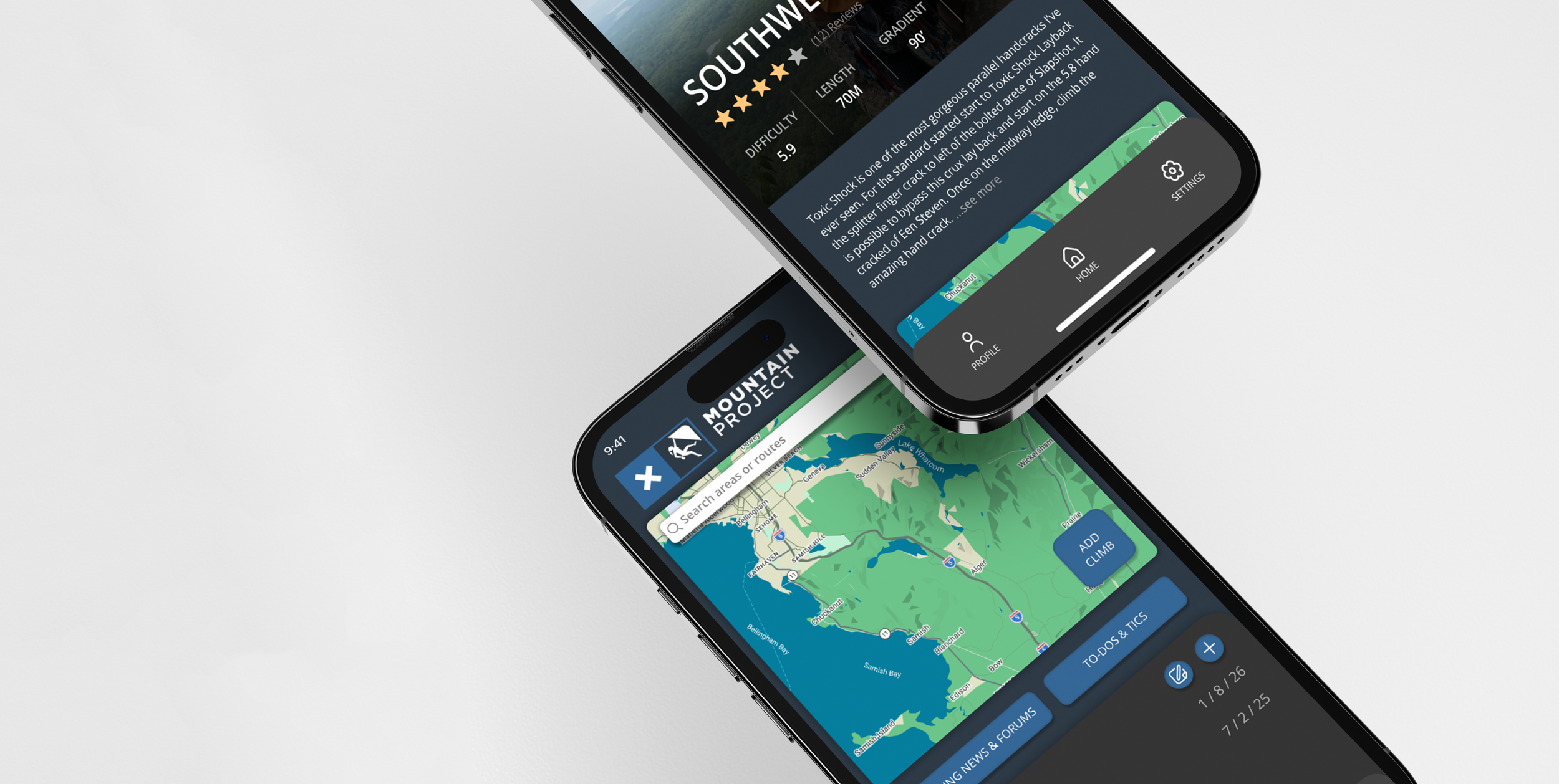Mountain Project is a DIGITAL CLIMBING GUIDEBOOK— a community-powered database of climbing routes worldwide that climbers can access via web or mobile app.