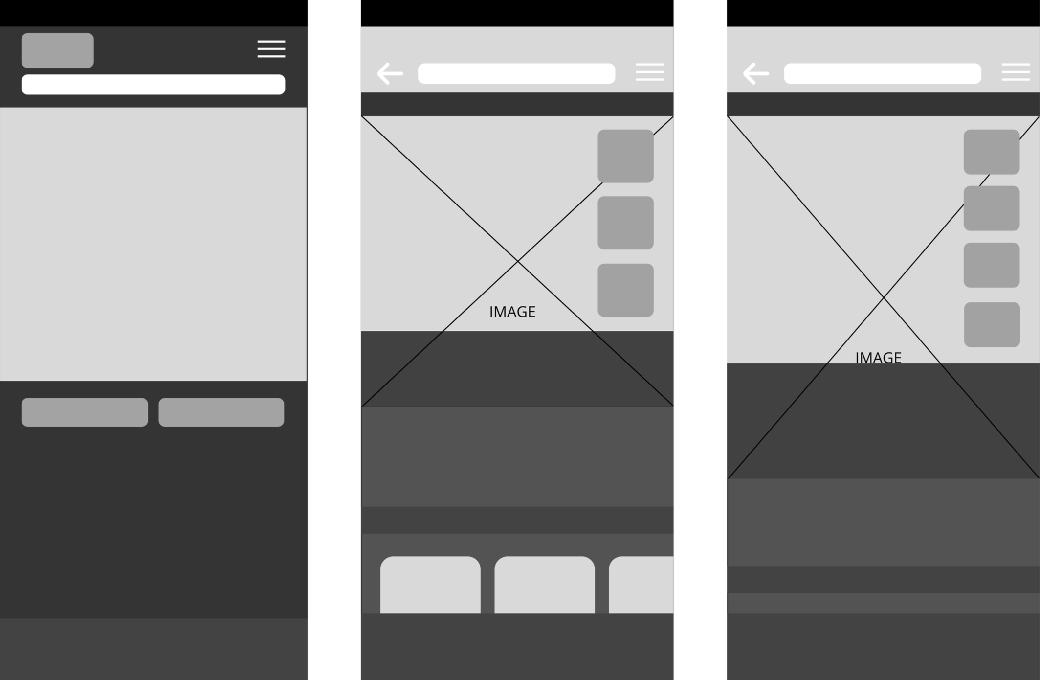 My wireframes illustrate the placement of key components, including imagery, primary sections, and main action buttons, to establish a clear and intuitive layout.