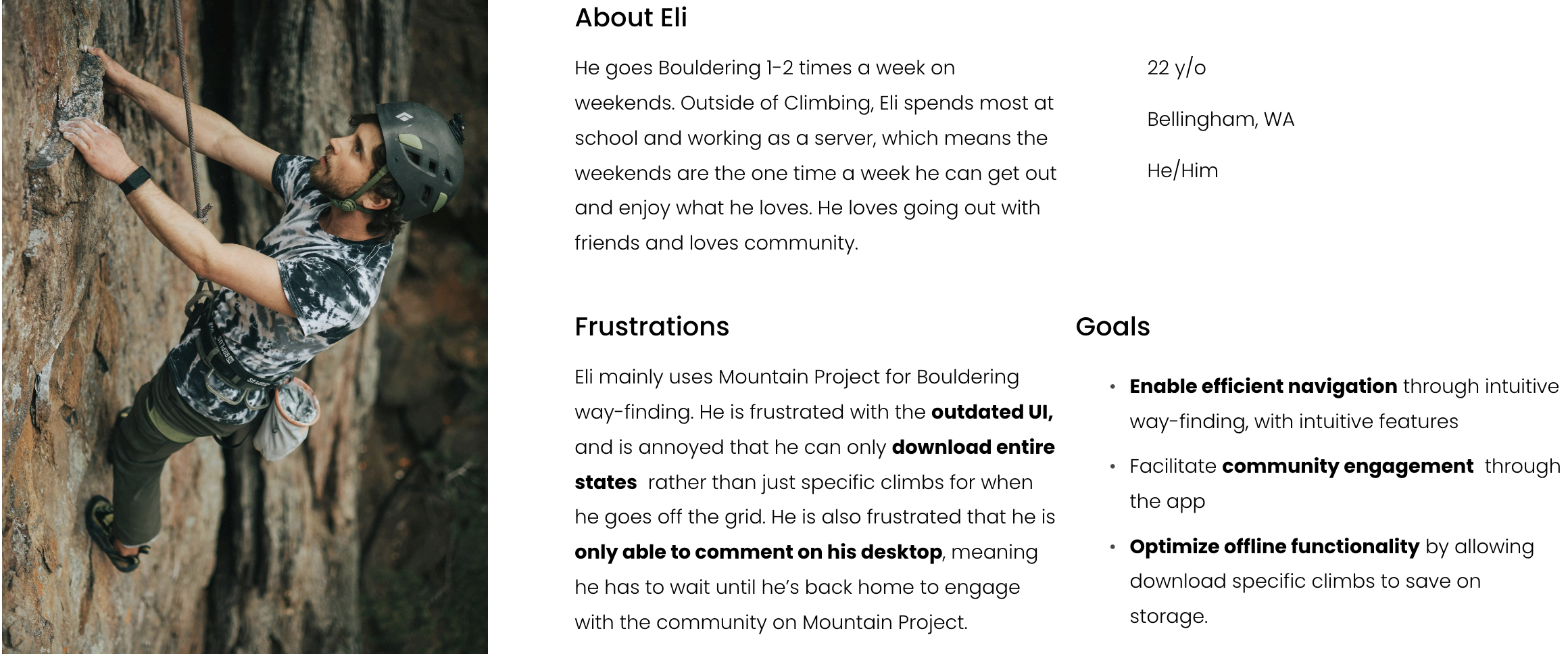 Created visual hierarchy by making the climb photo the main focus, improving readability